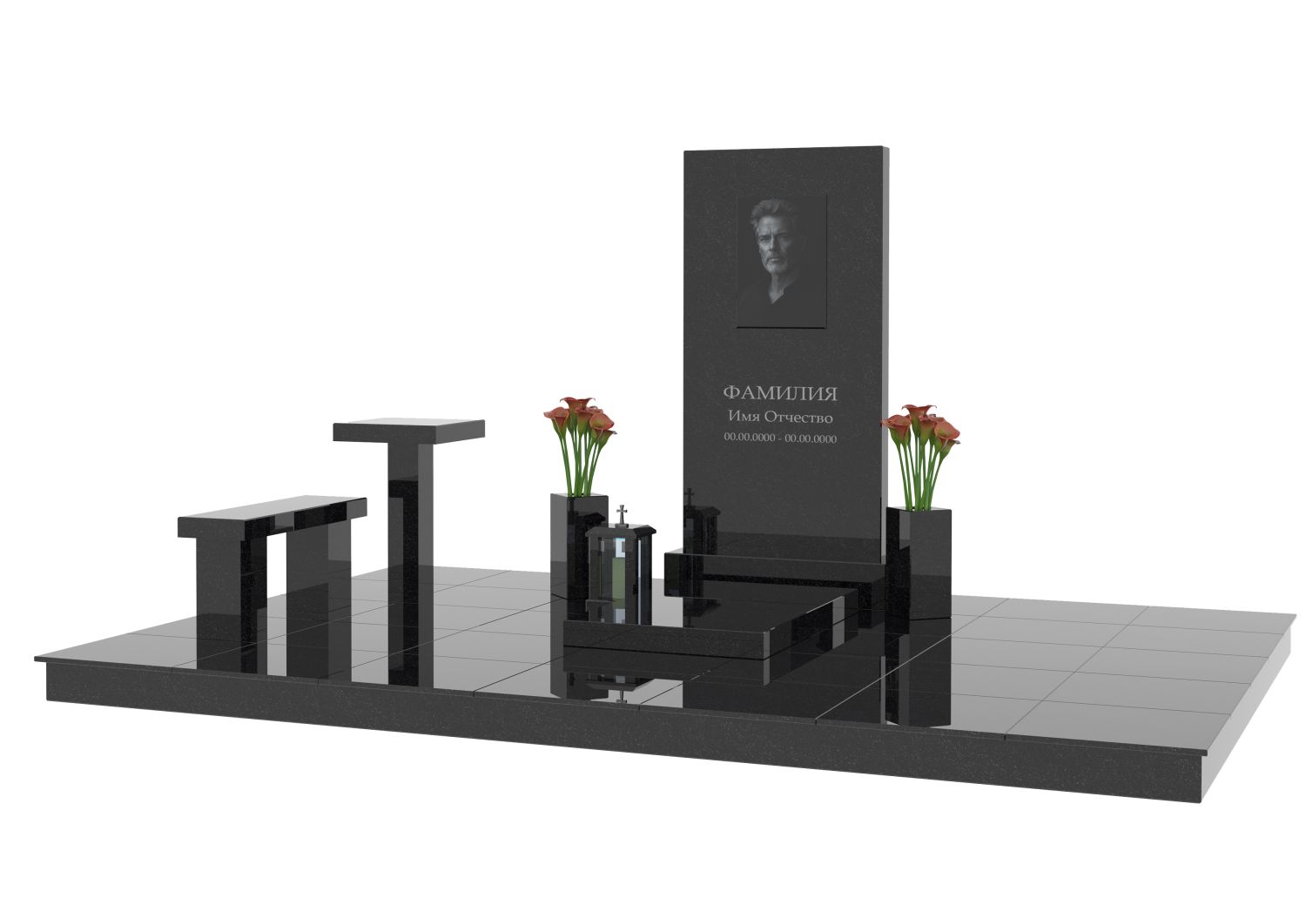 • Комплектация: 2 гранитные вазы, лампада, стол и лавка (гранит), надгробная плита 1200×600×30 мм