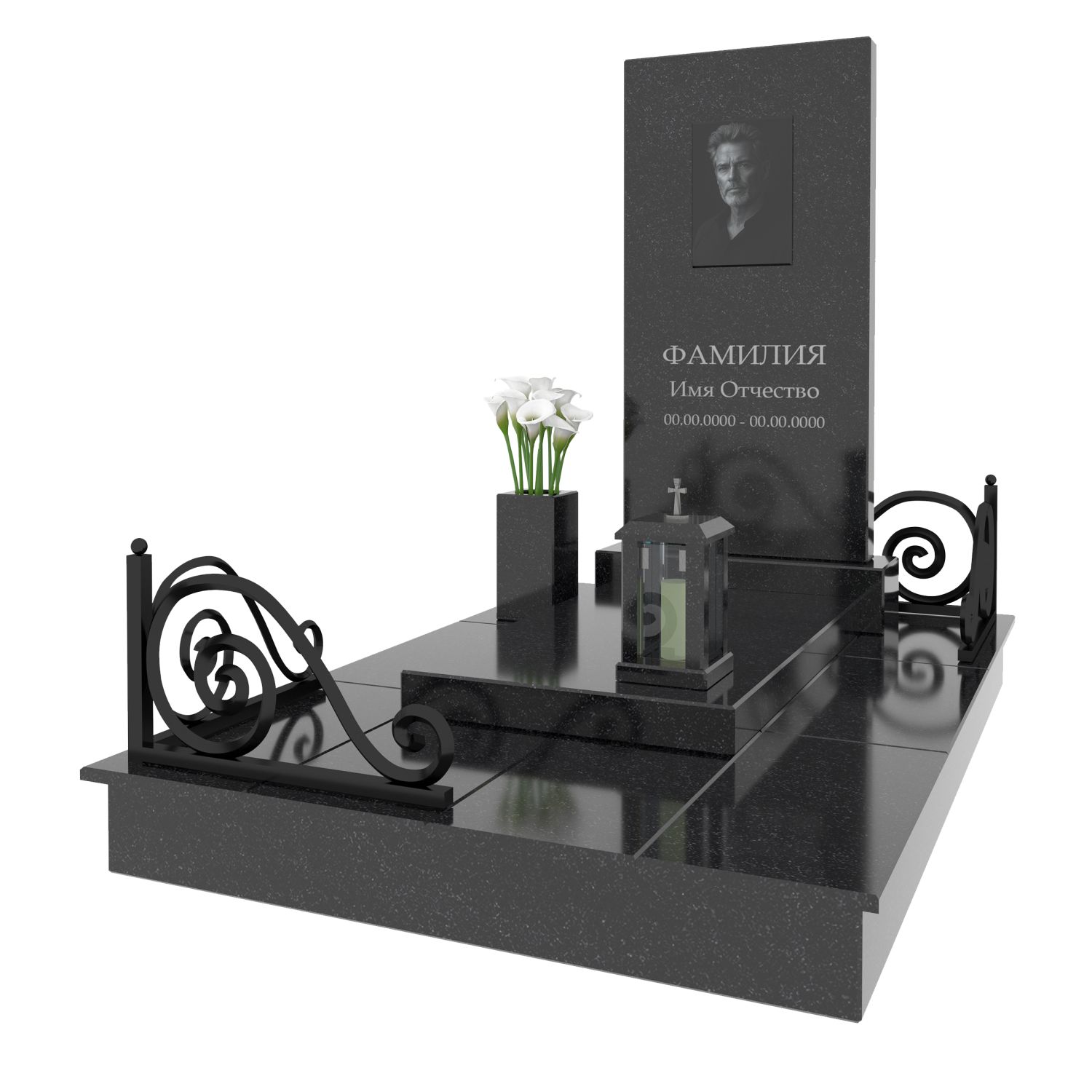 Мы — производитель полного цикла, поэтому любой вариант из каталога адаптируется под вас. Меняем размеры стелы, вид гранита и комплектацию основания с учетом особенностей участка.